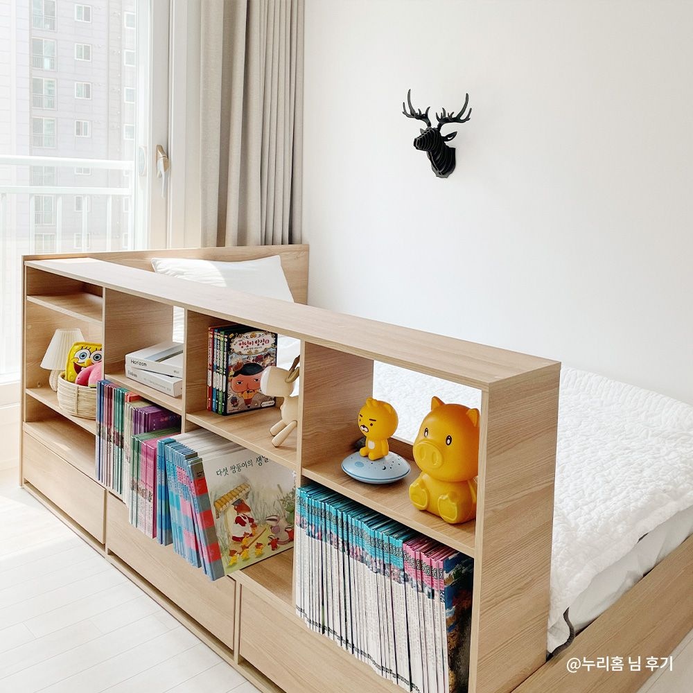 편백(히노끼) 평상형 분리형 선반형헤드 퀸침대 P-BE-Q-010