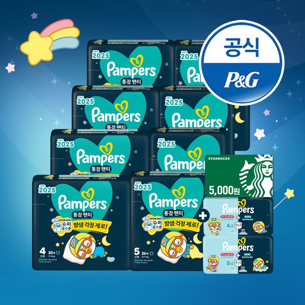 [팸퍼스] 2025 통잠팬티 밤기저귀 4 ~ 6단계 1팩.