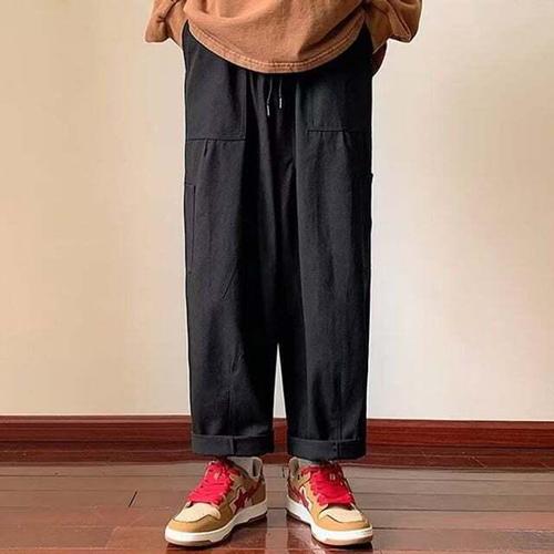[셀러허브_여성트랜드패션]작업바지 남자조거팬츠 팬츠 9부면바지 밴딩 통큰바지 남자옆트임슬랙스 패션