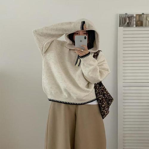 [모어오브]투데이 후드 니트 긴팔 스웨터 탑