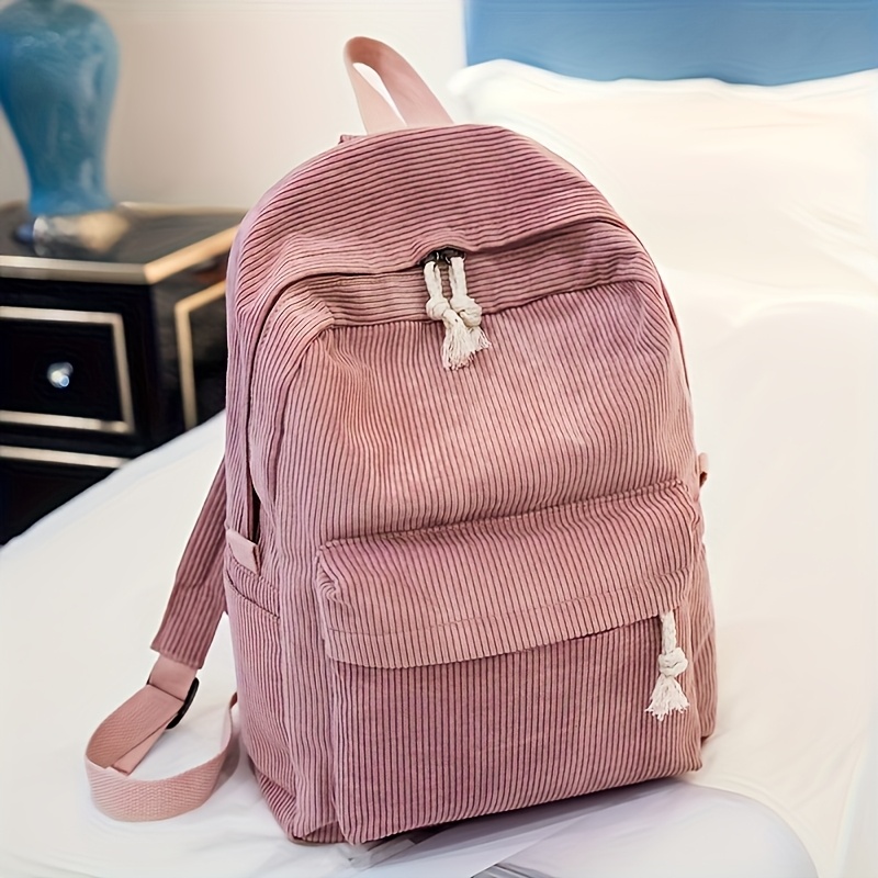 TEMU 여대생을 위한 코듀로이 백팩, 단색, 심플 디자인, 대용량, 캐주얼 스타일, 트렌디한 여성 가방.|백팩