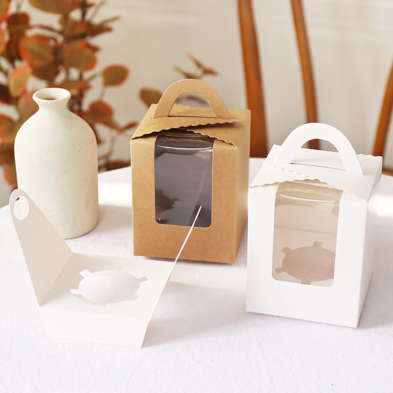 머핀 선물 상자 투명창 고급 답례품 포장 종이 컵케이크 미니 손잡이 디저트 박스