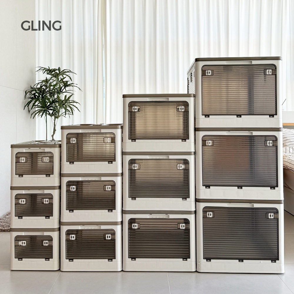 클리나 5면 오픈도어 투명 접이식 폴딩 리빙박스 플라스틱 수납함 대용량 수납 정리함
