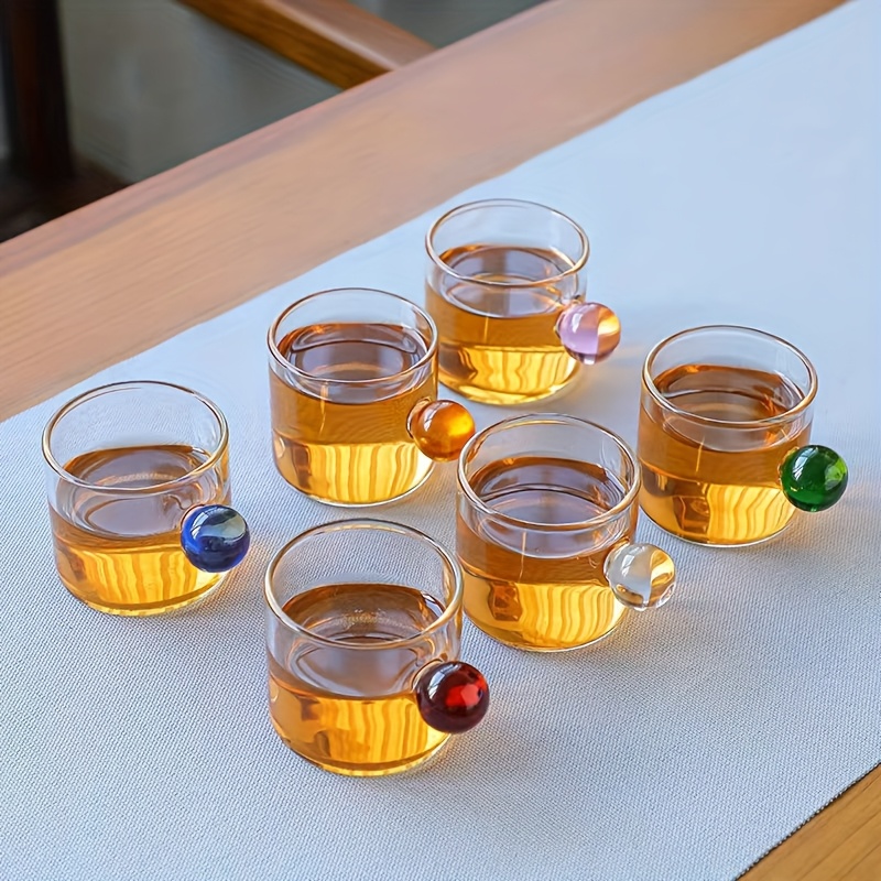 TEMU 6개 세트 라운드 핸들 밀크컵, 커피컵, 와인잔, 소형 물컵, 내열 유리제품, 친구 모임, 사무실, 휴일 선물용, 100ml/3.38oz