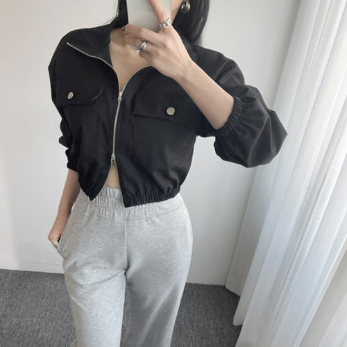 글램핏 / 코튼 면 100 반하이넥 투웨이 지퍼 크롭 자켓 2컬러
