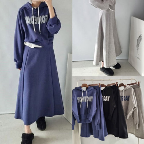 [드리다]여성 봄 가을 골지 루즈핏 빅사이즈 티셔츠 H라인 밴딩 스커트 셋트 셋업 투피스 미시 캐주얼 등..
