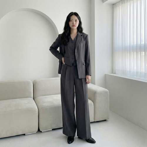 에쉬울프 오피스 싱글버튼 자켓 와이드 팬츠 정장세트