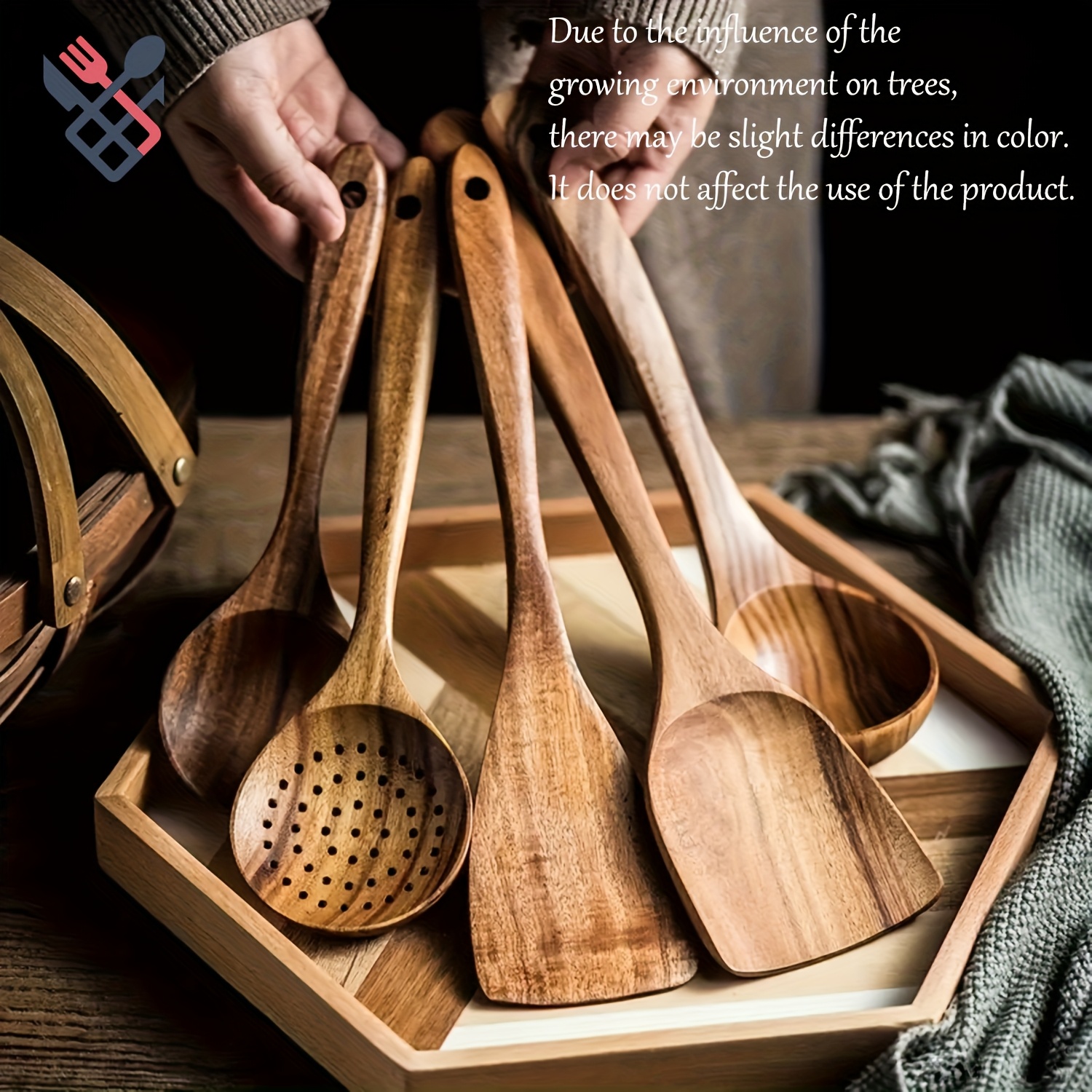 TEMU 5개 나무 숟가락 세트, 주방 나무 요리 도구, 나무 주방 용품 세트, 요리 도구 조합, 비스킷 팬 주방 도구 숟가락 및 볶음 스파투라