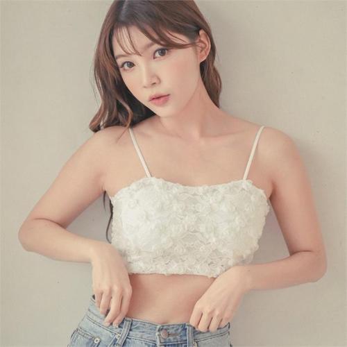 [다잇템]여자 레이스 플라워패턴 SS 튜브탑 나시 (8588569A)