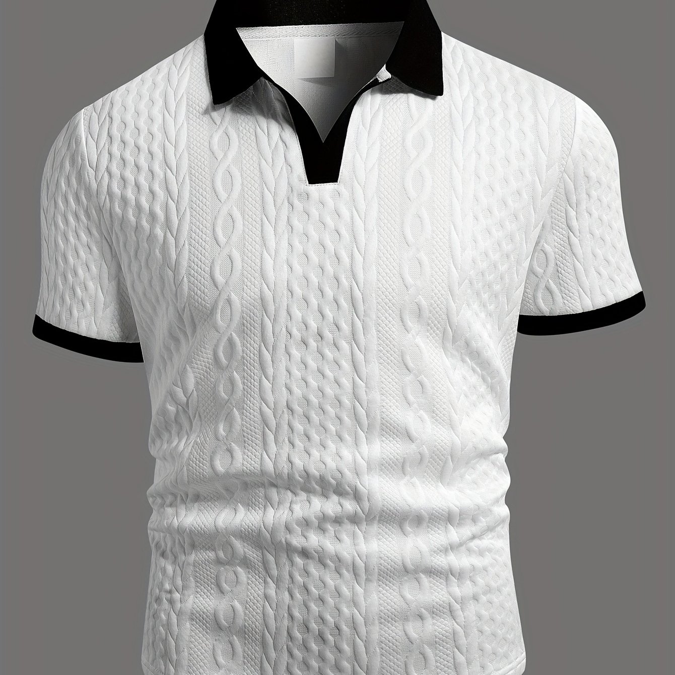 TEMU 여름용 통기성 이탈리안 스타일 컬러블록 라이트 매튜 트렌디 남성 셔츠, V넥, 약간의 스트레치, 자카드 텍스처, 슬림핏 반팔, 니트