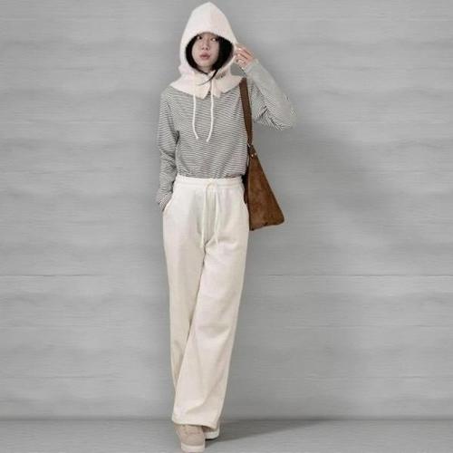 [다잇템][다잇템] 여성 넓은 보온 하트포켓 고무줄 무채색 트랙수트 바지 바지_23915427_588872