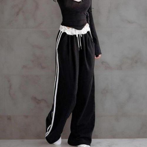 [다잇템]여성 넓은 캐쥬얼 색상 배합 트랙수트 바지