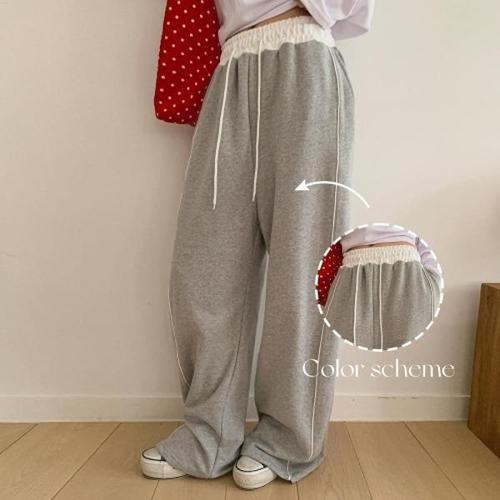 [옷자락] 여성용 와이드 캐주얼 트랙팬츠 사이드라인 밴딩