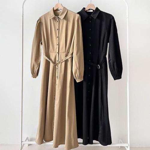 HOTBBA / 트렌치 무드 벨트 셔츠 롱원피스 JSD_1004065