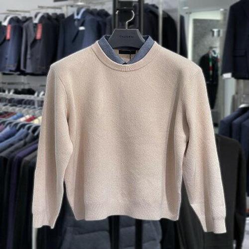 [트루젠][트루젠] 트루젠 아이보리 셔츠레이어드 코튼블랜드 남자 니트티셔츠 2444SP200130 (P003678745)