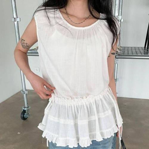 [트위]레이어드 프릴 끈나시 티셔츠 (TNBBFTN003)