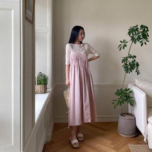 셔링 뷔스티에 원피스 여성 온나핏 민소매 트위