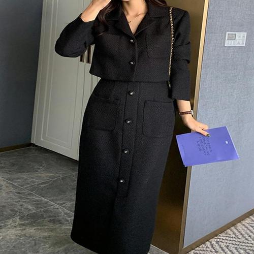 [귈림](귈림) [SET] 트위드 자켓+앞트임 롱 스커트 세트 (GBSSE401P)