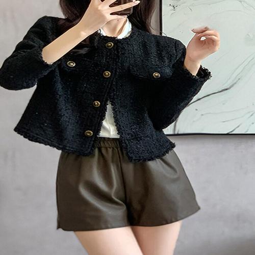 (자체제작) 루어스룸 젤리 가을 간절기 루즈핏 긴팔 골드버튼 포켓 라운드넥 숏 트위드 하객룩 자켓