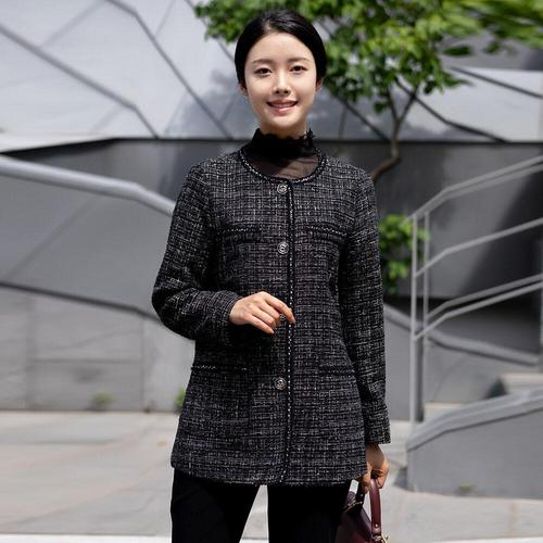 DZX 여성 클래식 긴팔 트위드 자켓 라운드넥 패션 점퍼