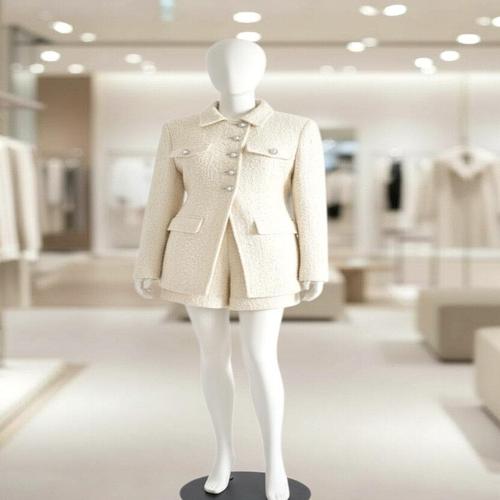 [다잇템]여자 트위드 카라없는 긴치마 재킷 투피스