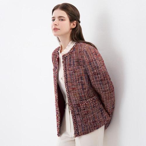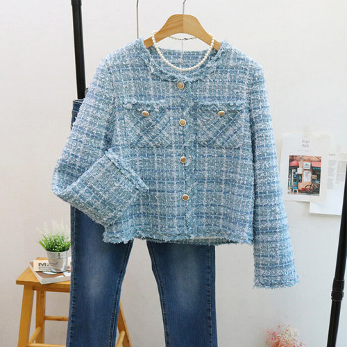 DZX 여성 클래식 긴팔 트위드 자켓 라운드넥 패션 점퍼