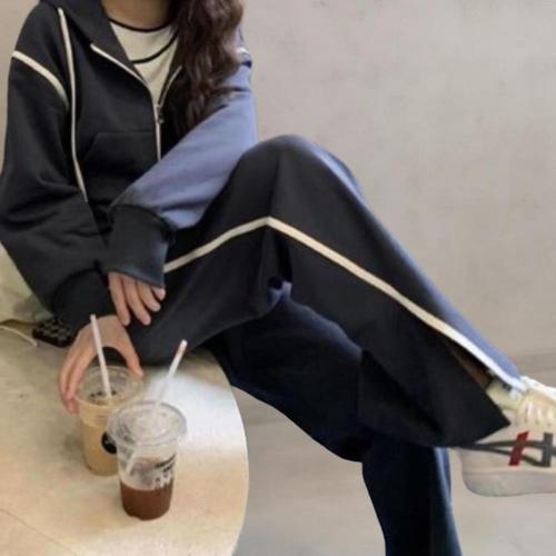 [옷자락]여성 캐주얼 네이비 후드 집업 트임 바지 세트