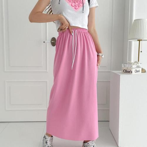 [다잇템]여자 고무줄 SS 살랑 트임치마 롱스커트 (10516515A)