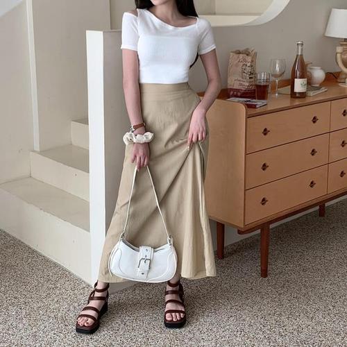 [시크릿라벨] 하이웨스트 옆트임 H라인 롱스커트