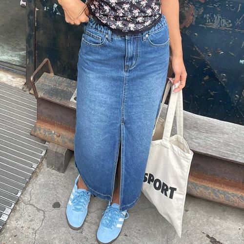 [에이비에프지]앞 트임 디테일 H라인 롱 청 스커트 APY4QS33J