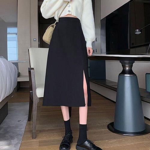 [하프클럽/]여성 앞트임 H라인 슬림 일자 롱 스커트