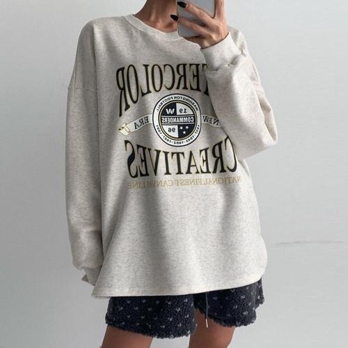 마켓피아 여성용 오버핏 레이어드 옆트임 데일리 맨투맨
