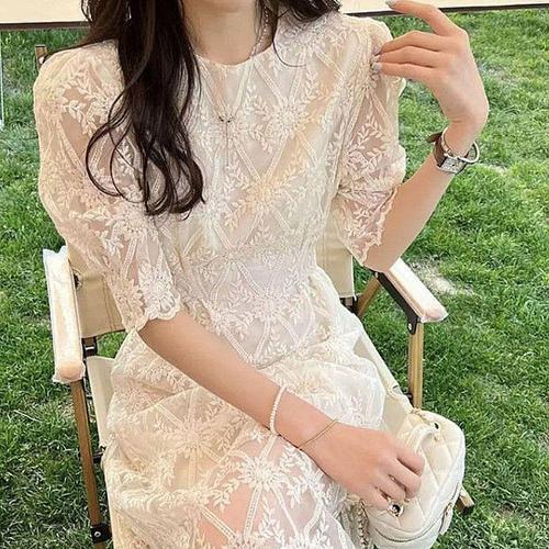 여성 레이스 옆트임 롱원피스 허리끈 페미닌룩 WFKMEIB