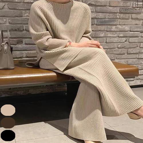 [위시드]모던 시크 라운드넥 트임 니트 팬츠 셋업 (WIBCOP001)