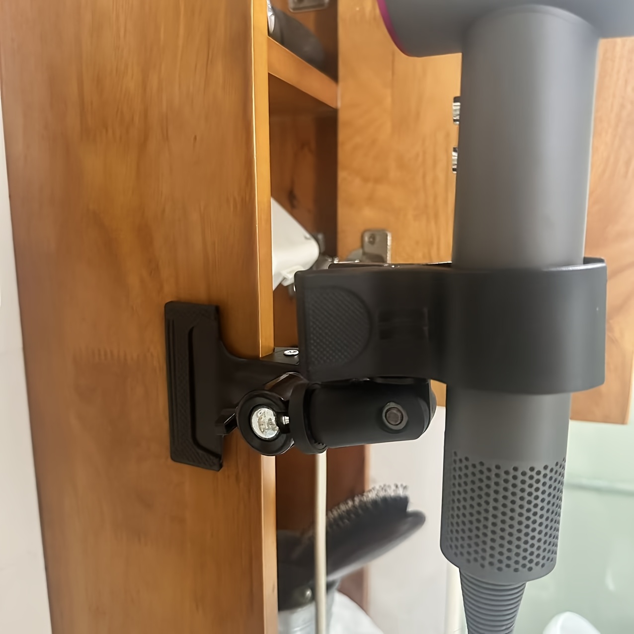 TEMU 헤비듀티 200g 금속 느낌 헤어드라이어 홀더 - 강력한 흡착식 벽/욕실 선반 마운트, 핸즈프리 헤어드라이어 스탠드 후크 포함, 공간 절약형 무접착 설치 (거울, 샤워기, 욕조 호환)