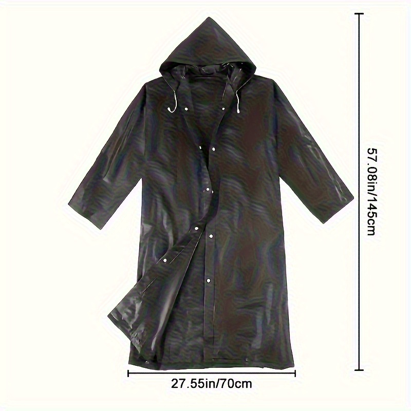 TEMU 고품질 롱 - 튼튼한 EVA 소재, 조절 가능한 드로스트링 후드 디자인, 가볍고 통기성 좋음, 사이클링, 하이킹, 낚시 적합 - 블랙 자전거 레인 기어 | 풀 커버리지 레인 장비 | 지퍼형