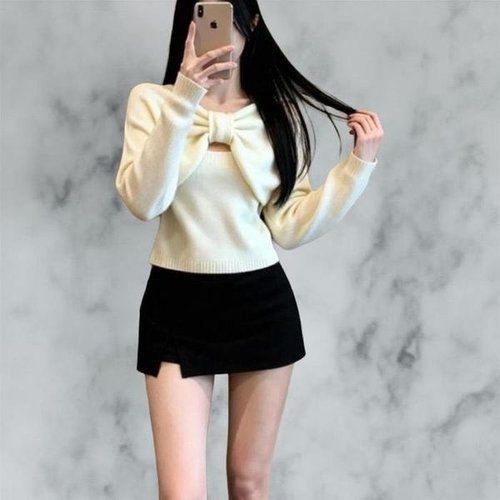 [다잇템_패션]여성 탱크 리본 슬리브리스 디자인 스웨터 세트