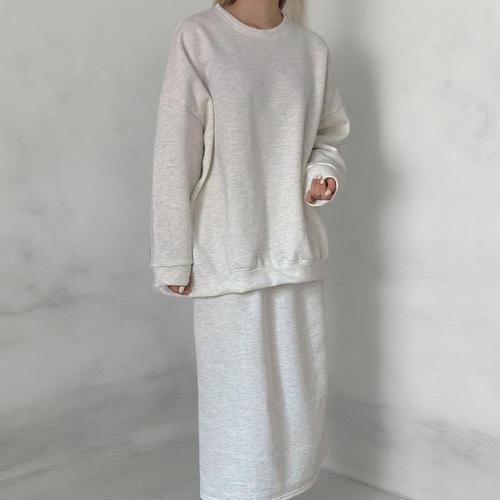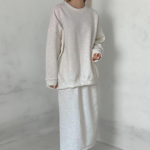 [옷자락] 여성 심플 맨투맨 기모 빅사이즈 세트 롱스커트