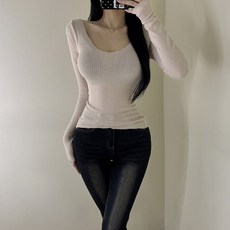 VANANA2 국내제작 골지 브이넥 긴팔티셔츠