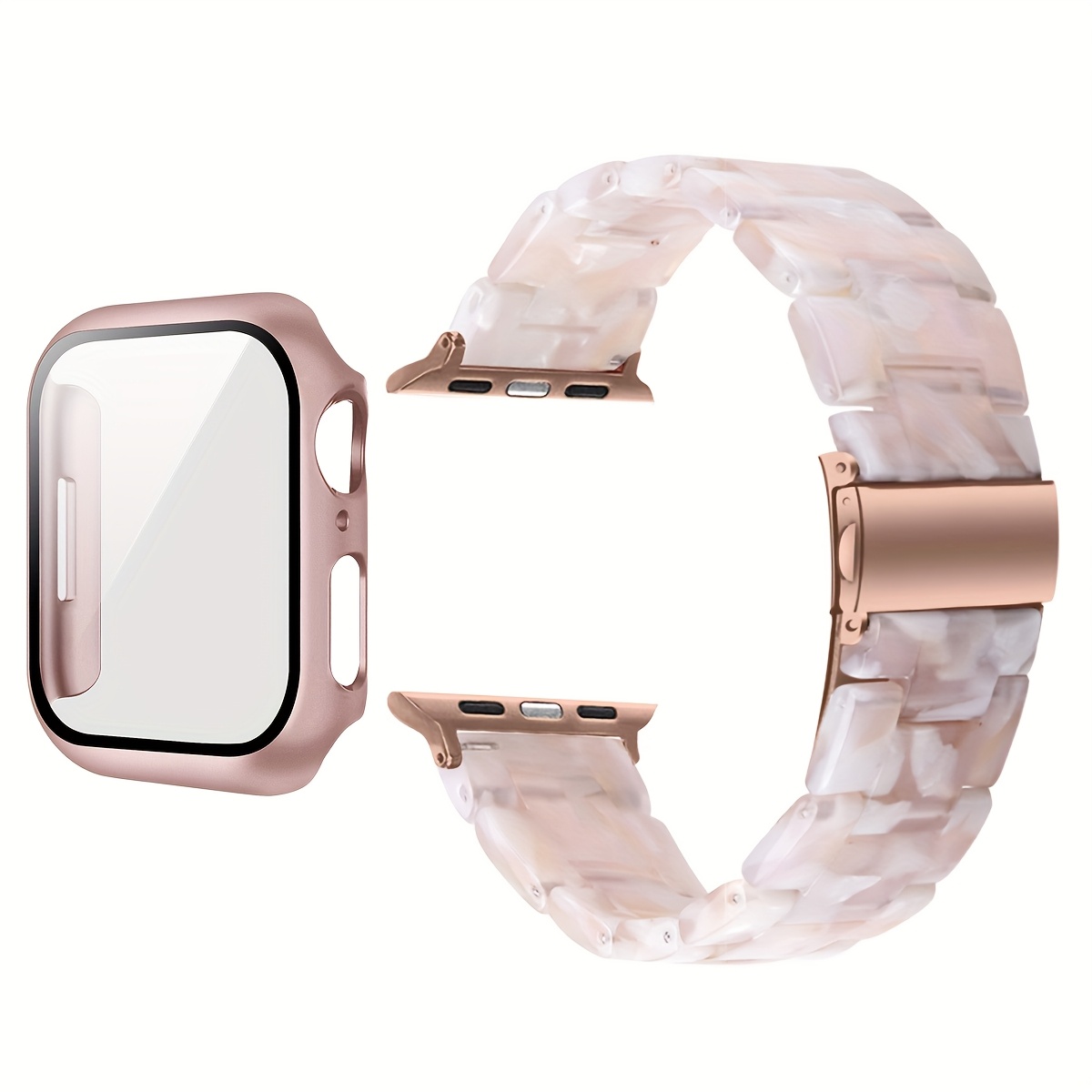 TEMU 2-in-1 시계 스트랩 + 스크린 프로텍터 케이스, 스타일리시하고 가벼운 레진 시계 스트랩, 스테인리스 스틸 버클 호환, PC 및 레진 소재, iWatch 6 5 4 시리즈에 적합, 사이즈: 40/41/44/45mm