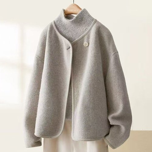 TEMU 여성용 페티트 코리안 빈티지 트위드 자켓 - 짧은 스코틀랜드 스타일 코트, 앤틀러 버튼, 벨트 없는 숏 길이 & 손세탁 가능 소재 (드라이클리닝 금지) 소프트 프레임용 - 캐주얼 겨울 아우터웨어, 스타일|반팔