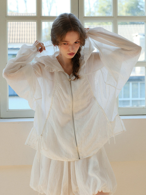 [쎄무아듀] Cest_White ruffle hooded jacket