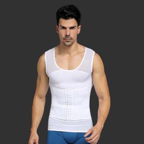남성 바디 셰이퍼 피트니스 탄성 복부 꽉 끼는 반소매 셔츠 탱크 탑 모양 속옷 슬리밍 가슴 쉐이핑