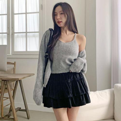 [다잇템][다잇템] 여성 쁘띠 프릴 티어드 귀여운 폭신 벨루어 스커트_23460621_588872