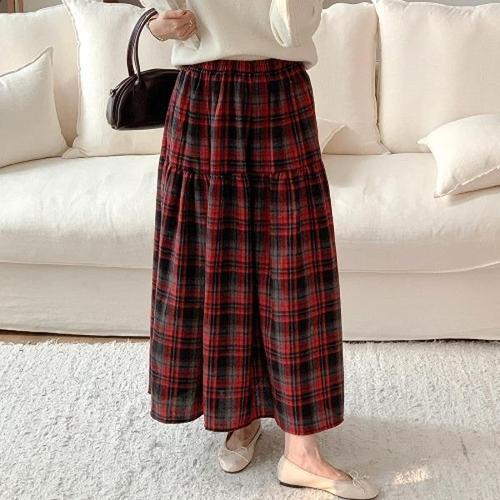 [다잇템]여자 고무줄 티어드 롱 귀여운 격자 스커트