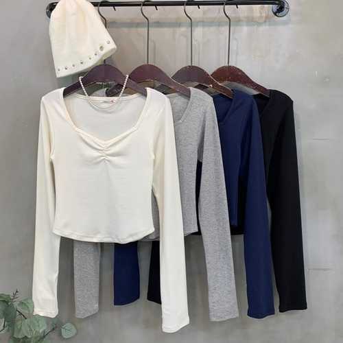 시온 모달 셔링 하트넥 핸드워머 긴팔 티셔츠 4color