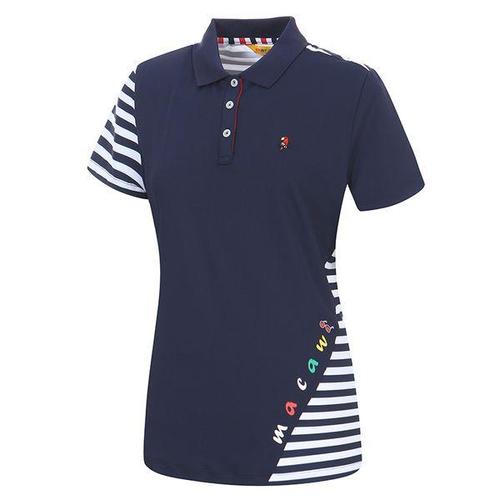 [마코](여성)언발 스트라이프 배색 카라 반팔 티셔츠_MLW2TS71