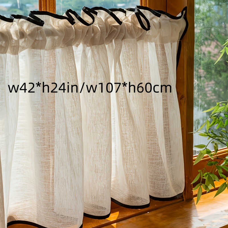 TEMU 1개, 일본 스타일 블랙 트림 반차광 패션 쇼트 커튼, 상단 로드 포켓, 고품질 소프트 단열, 안감 없음, 세탁 가능, 주방·카페·베이 윈도우·발코니 장식용