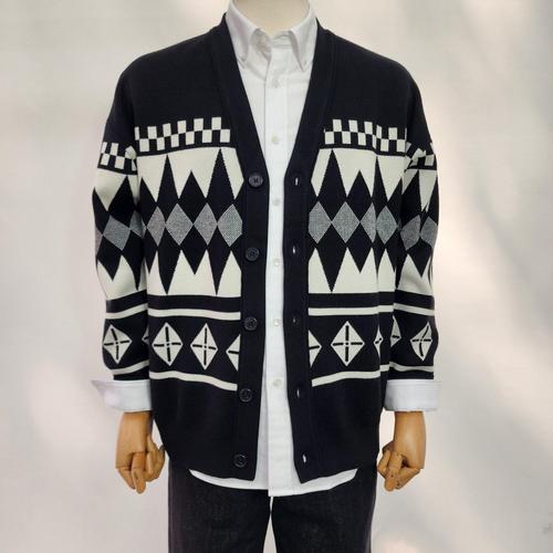 [파렌하이트]자카드 노르딕패턴 오버핏 가디건 블랙_U35FL