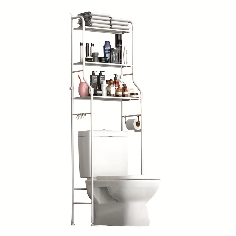 TEMU 3단 욕실 수납 선반 - 무드릴 공간 절약형 위탁장, 강력한 금속 욕실 캐비닛 (바닥 설치), 쉬운 조립 욕실 선반 유닛, 화장실/샤워실/세면대용, 디자인, 내구성 있는 구조, 다층 선반, 아파트 생활